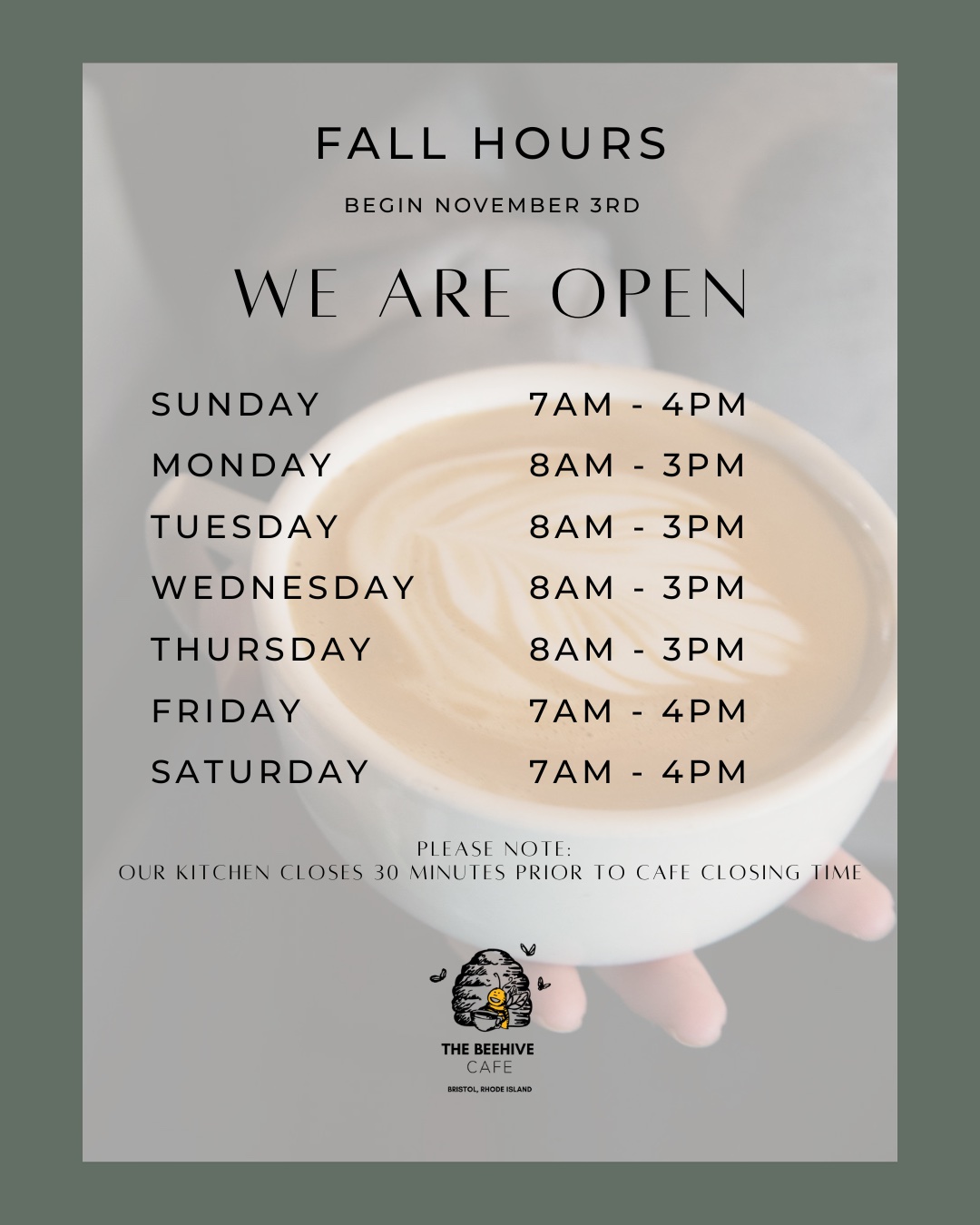 Nestled in the charming, historic waterfront of Bristol, Rhode Island—The Beehive Cafe is a true community hub. We've created a warm and inviting space where locals and visitors gather, connect, and savor good food and good company. Our passion lies in crafting breakfast and lunch dishes that delight—using fresh, quality ingredients sourced locally when possible. From perfectly brewed New Harvest Coffee Roaster coffee to thoughtfully prepared sandwiches and pastries, every item is made with care.